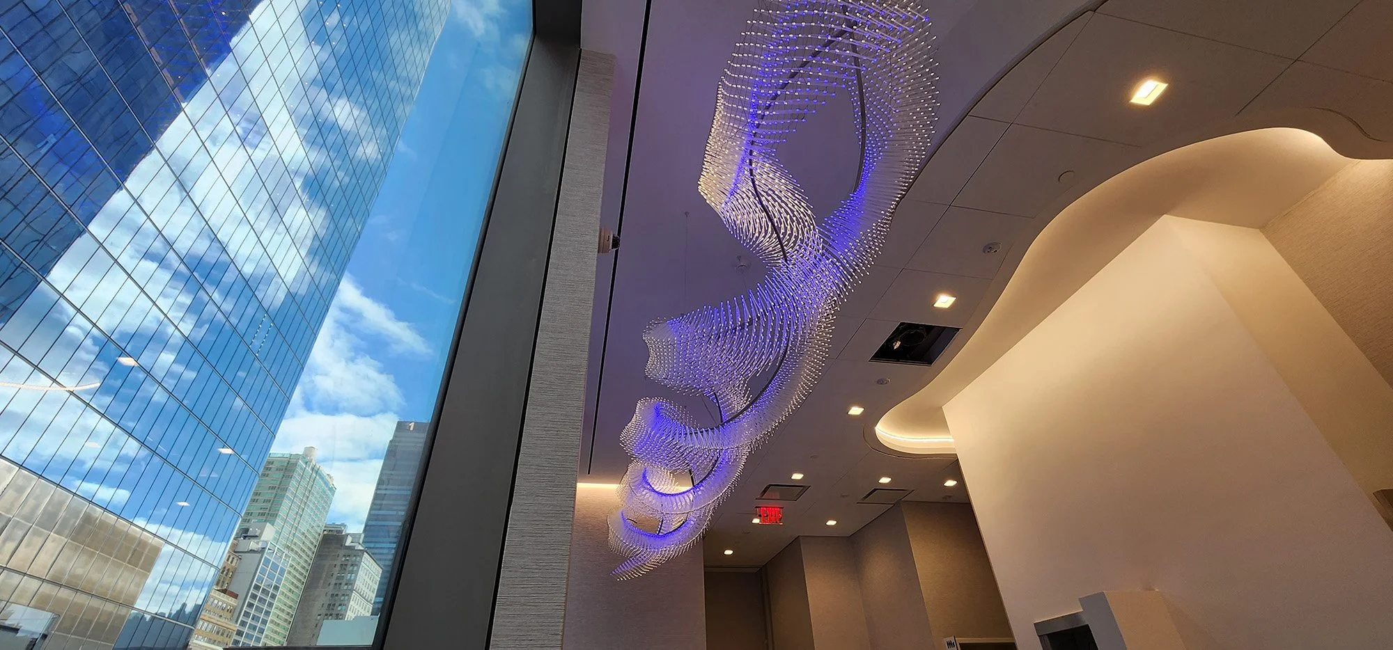 In 2023, Krugman Studio created Capillary Helix for Montefiore's Einstein Advanced Care at Hudson Yards. The sculpture was conceived as a response to the question of how light and art can promote healing within healthcare settings.