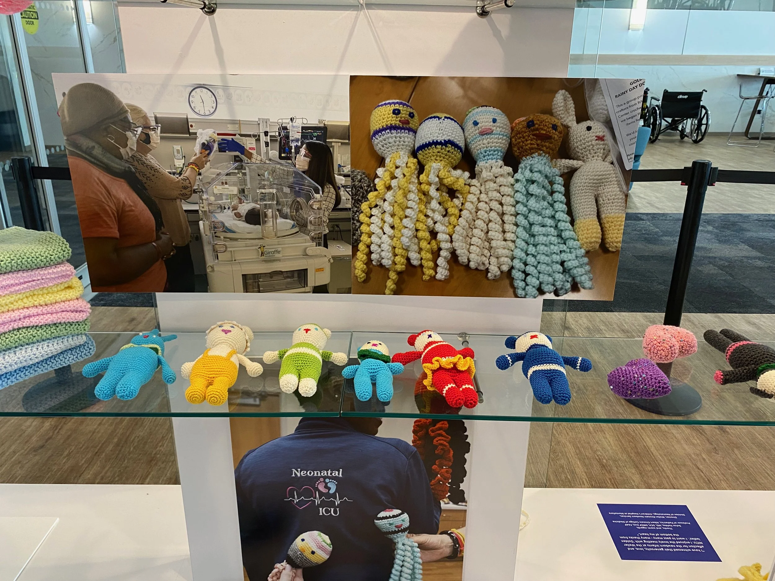 “Community connection is an important social determinant of health. I’m so proud of the Golden Ladies for their ability to remain virtually connected during the pandemic to create these beautiful pieces of crocheted and knit art. These pieces are more than just art; they help to heal and console our most vulnerable NICU newborns. The Golden Ladies’ work is being exhibited in conjunction with The Fine Art Program at Montefiore Einstein at our Hutch Tower. Enjoy!”
